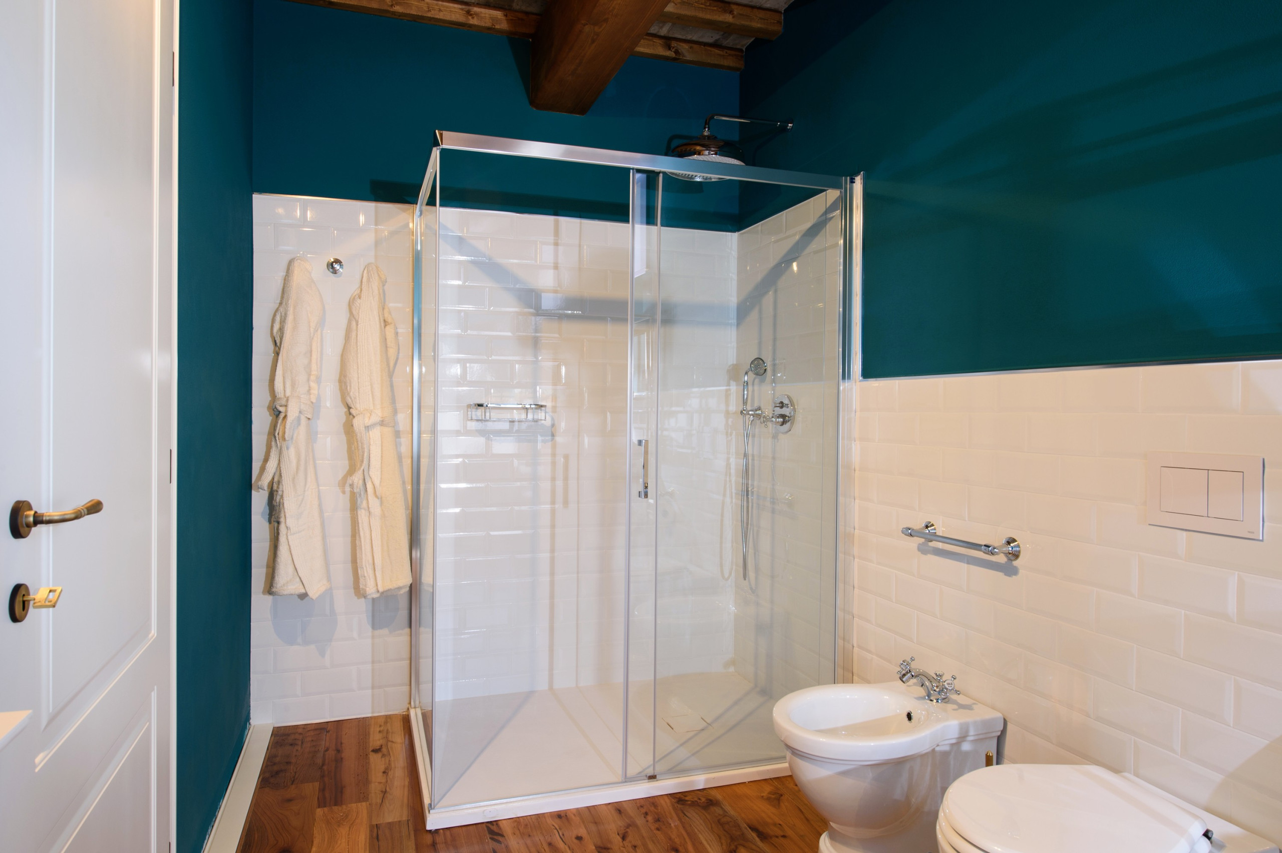 Fußbodenheizung und individuell regulierbare Klimaanlage in allen Zimmern (auch in den Badezimmern), professionelle Soundsysteme und moderne Fernseher.
