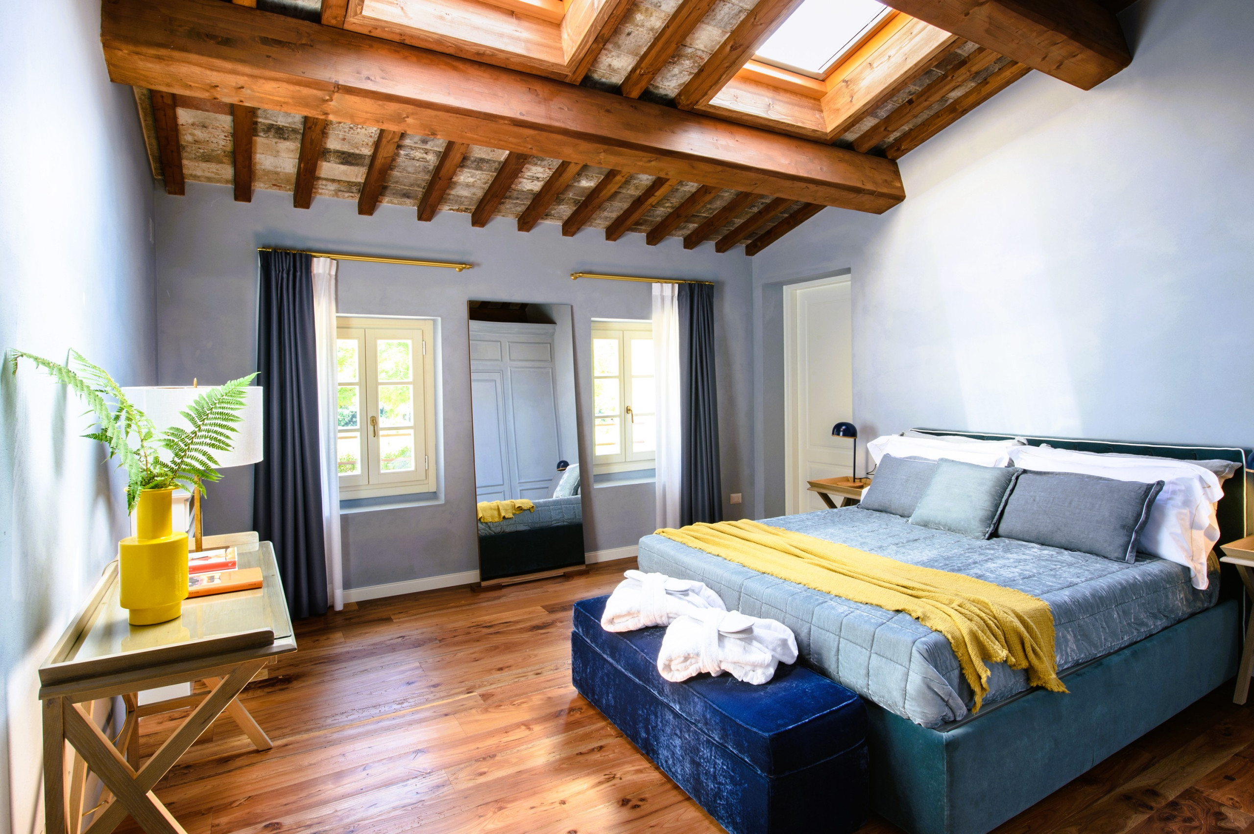 Deux bâtiments (villa principale et dépendance) peuvent accueillir jusqu'à 12 adultes et 4 enfants. La villa comprend 6 chambres doubles avec salle de bain privative, dont deux suites parentales de 25 m².
