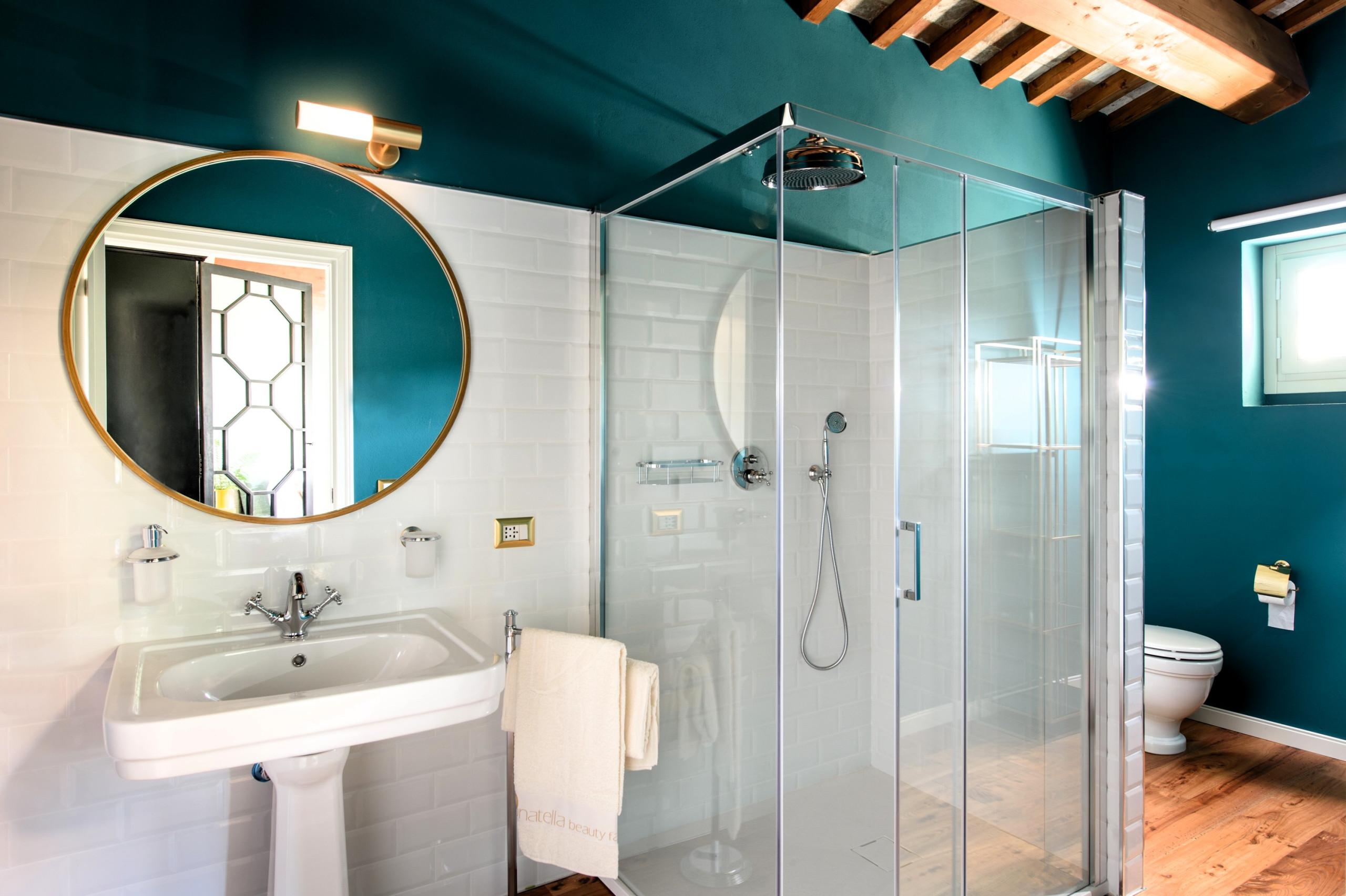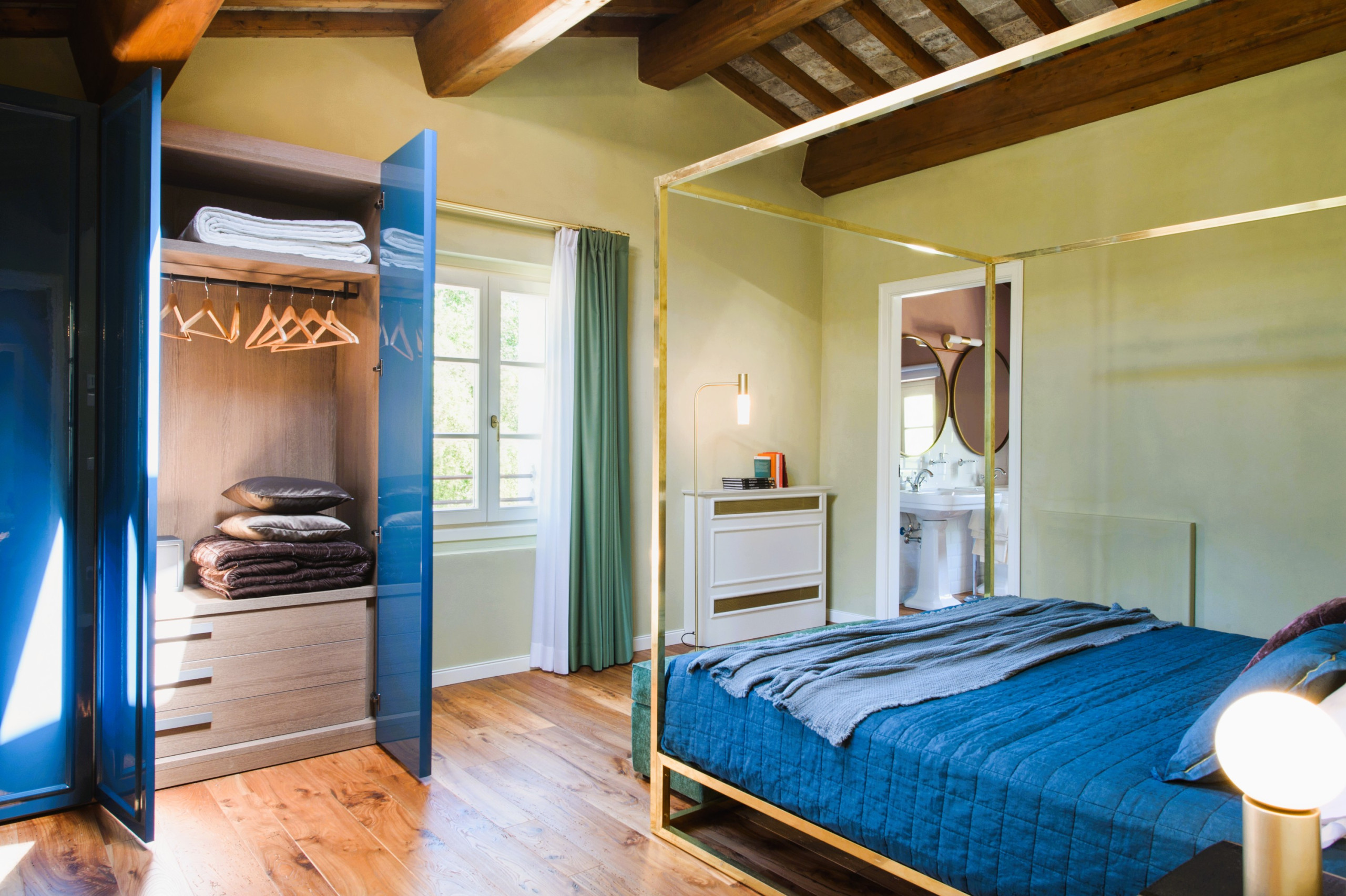 Riscaldamento a pavimento e aria condizionata individuale in ogni stanza (bagni inclusi), impianti audio professionali e TV high-tech.