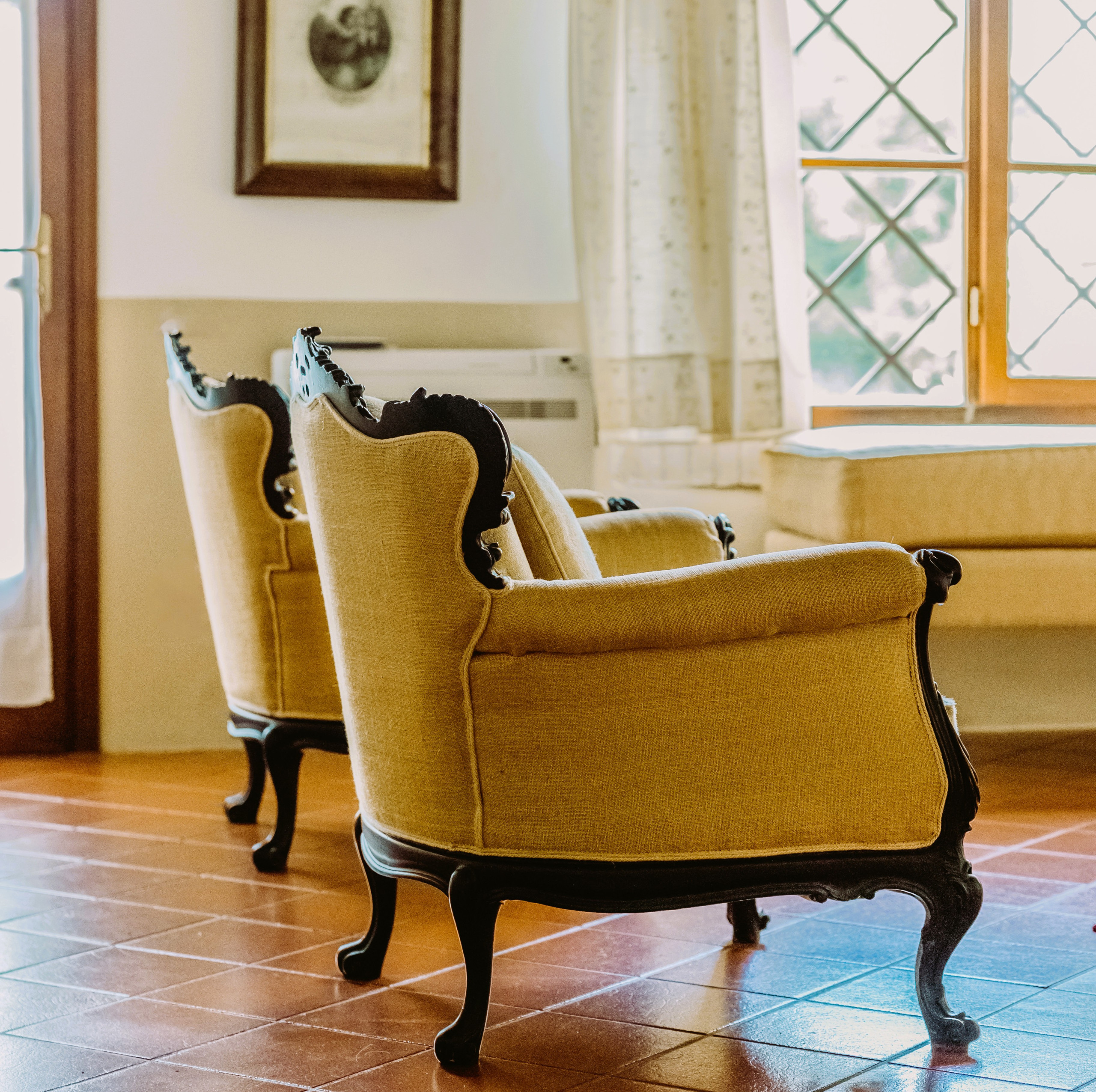 Elegant, all on the ground floor, with large windows overlooking the large garden and pool.