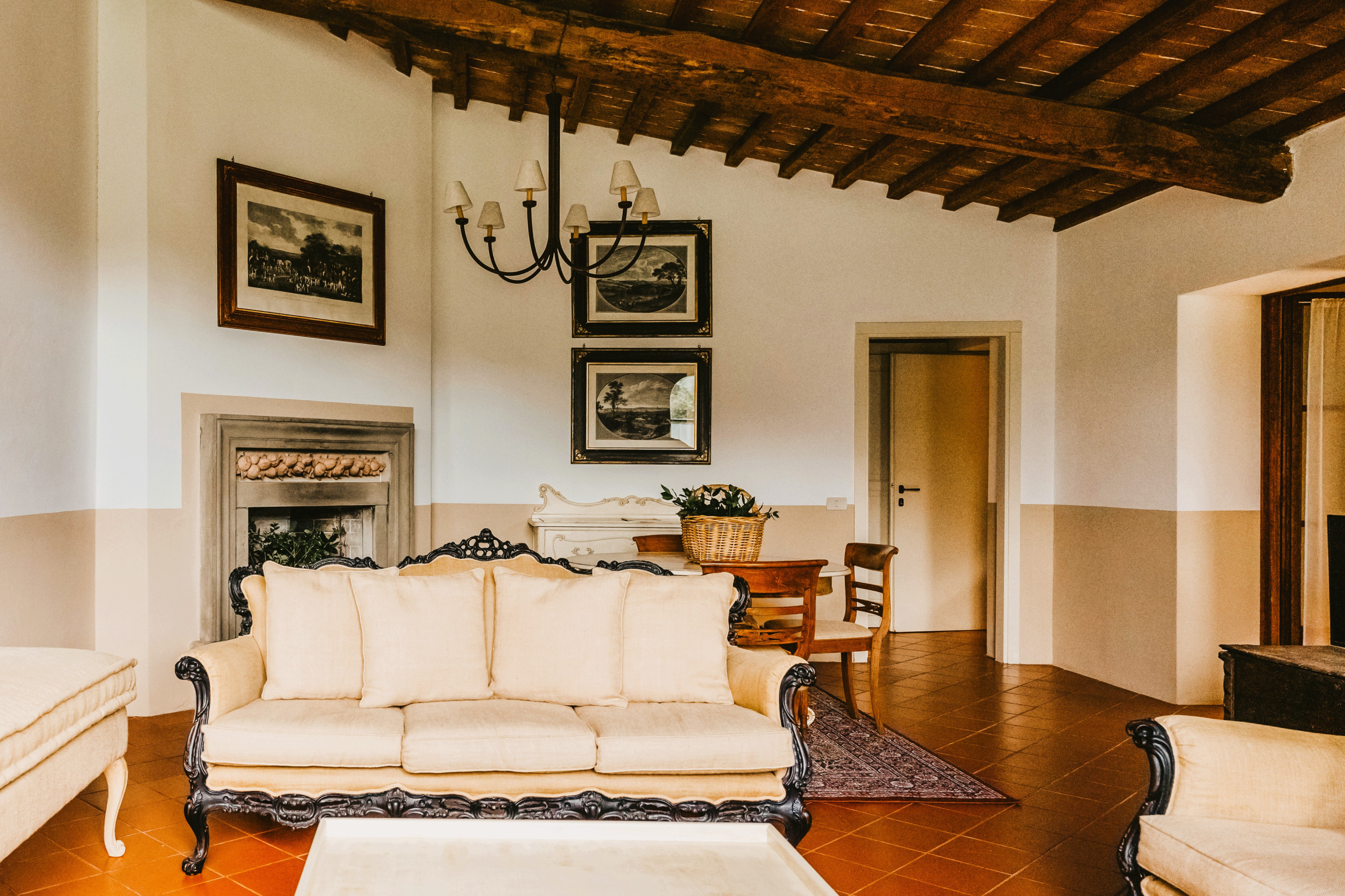 This two-level apartment with a mezzanine is one of five romantic apartments in a carefully restored farmhouse.
