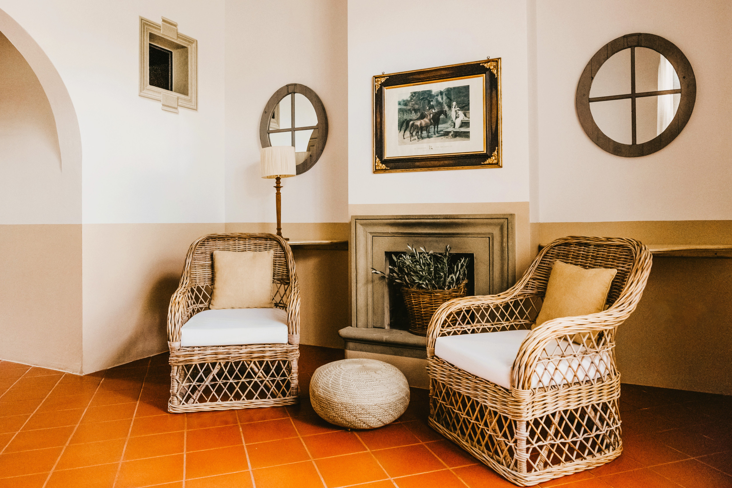 This two-level apartment with a mezzanine is one of five romantic apartments in a carefully restored farmhouse.