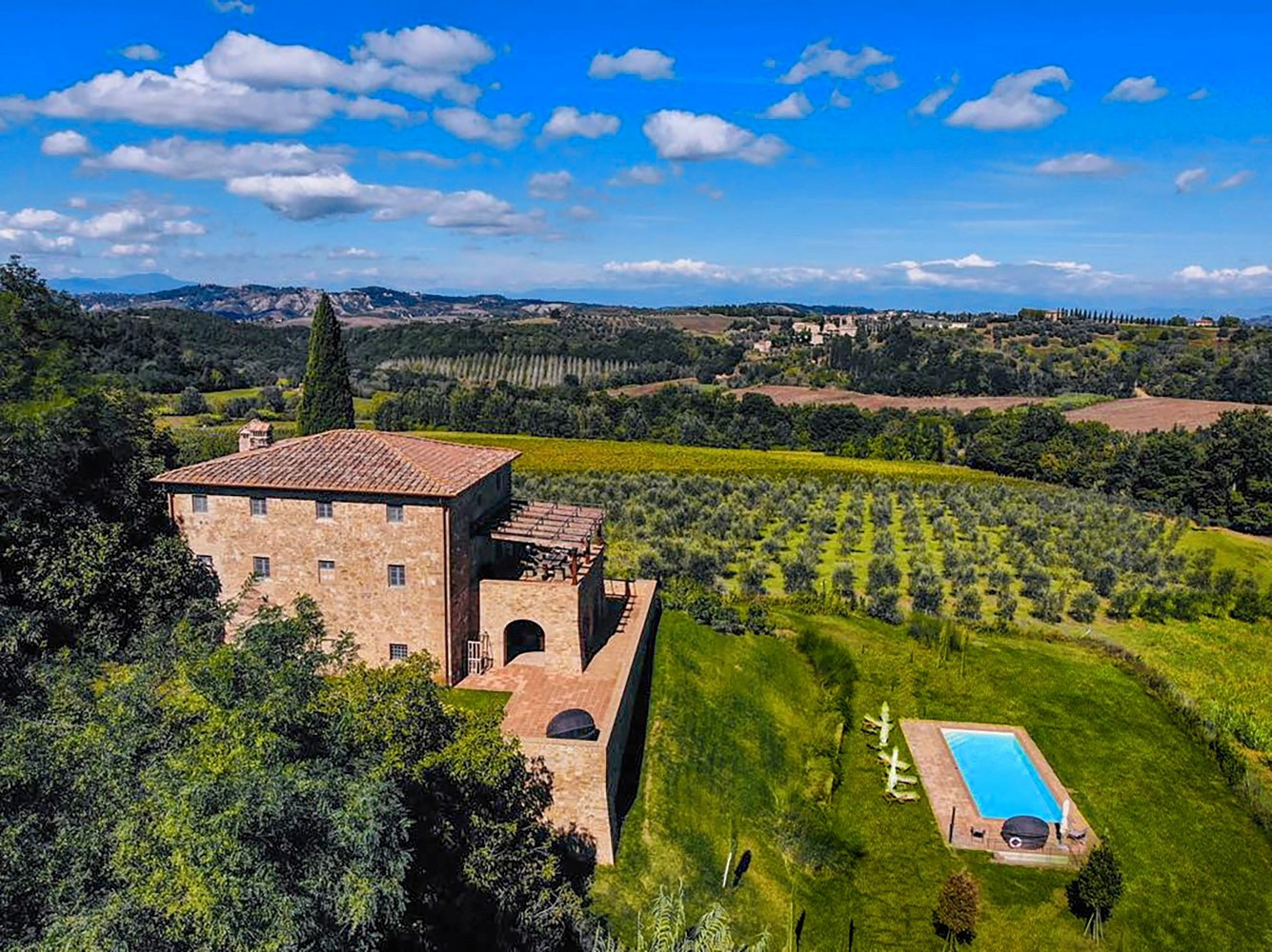 An authentic Tuscan farmhouse set within a breathtaking landscape, perfectly positioned just an hour from the historic wonders of Pisa, Florence, and Siena.