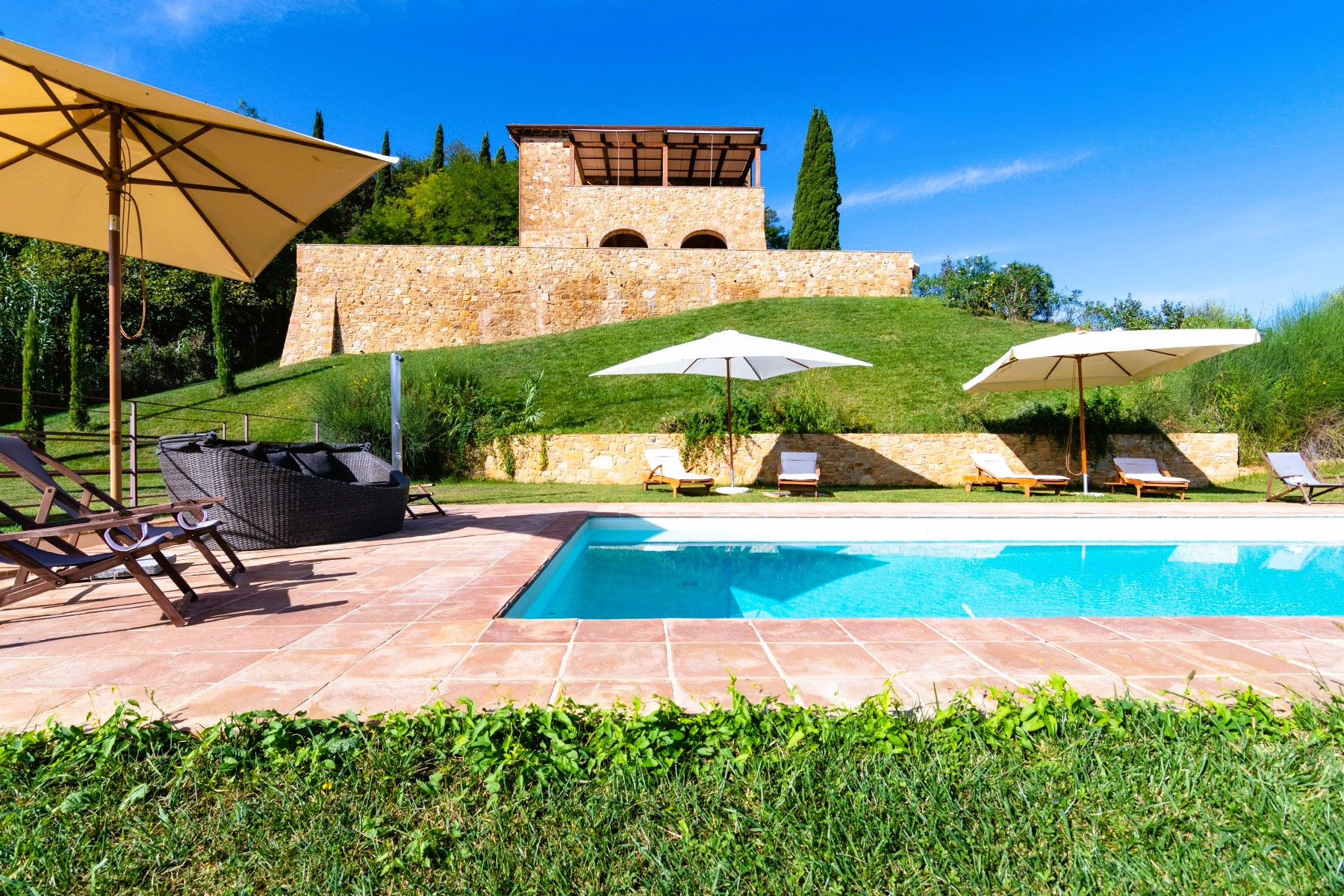 Located near the exclusive Castelfalfi estate, this luxury villa accommodates up to 10 guests.