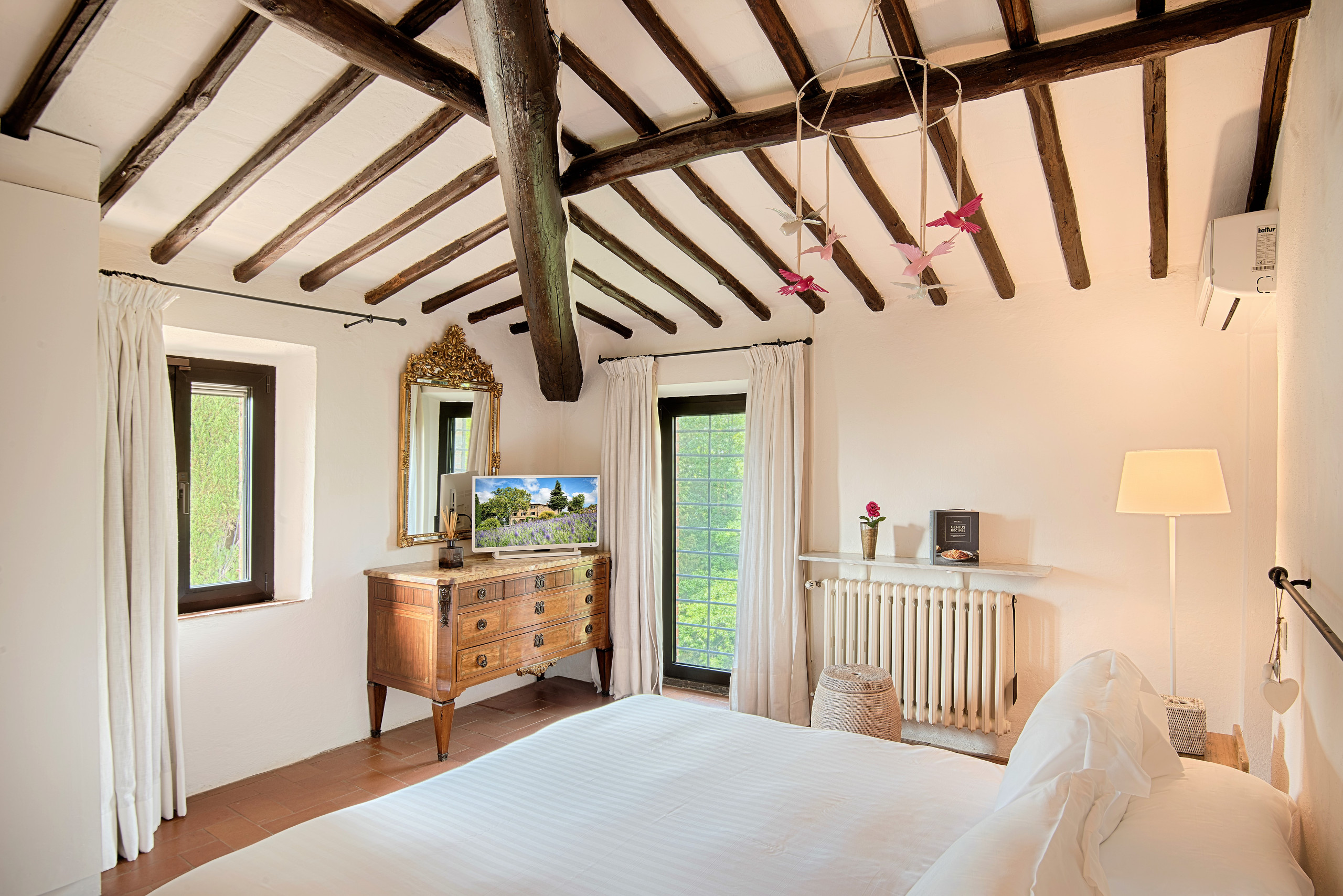 Just as impressive as the interiors are the outdoor areas with breathtaking views of the ancient, traditional terraces of the Antico Podere vineyard.